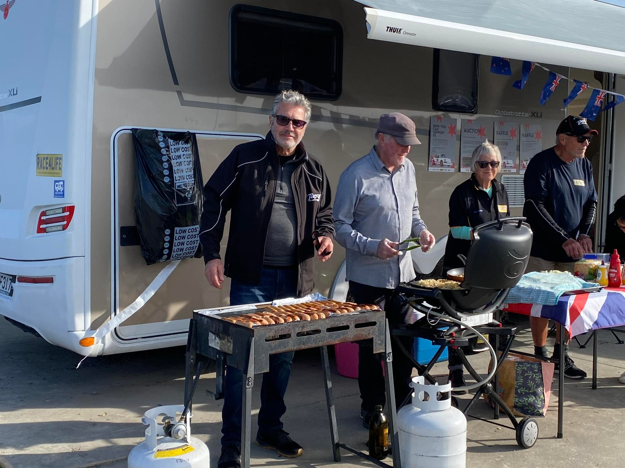 Each day the team greeted the rally cars, supplying them with treats including the generously donated Whittaker’s Chocolate Lovers peanut slabs and MineraleAlpine water. The other treat for the participants was the world famous Race4Life gold coin sausage sizzle that proved a hit yet again! Thank you Foodstuffs North Island, for not only donating the BBQ food, but also donating the meals that keep the team running during the event. Also, a big shout out to Jonnie for allowing us to use his Mobile home and BBQing up a storm.